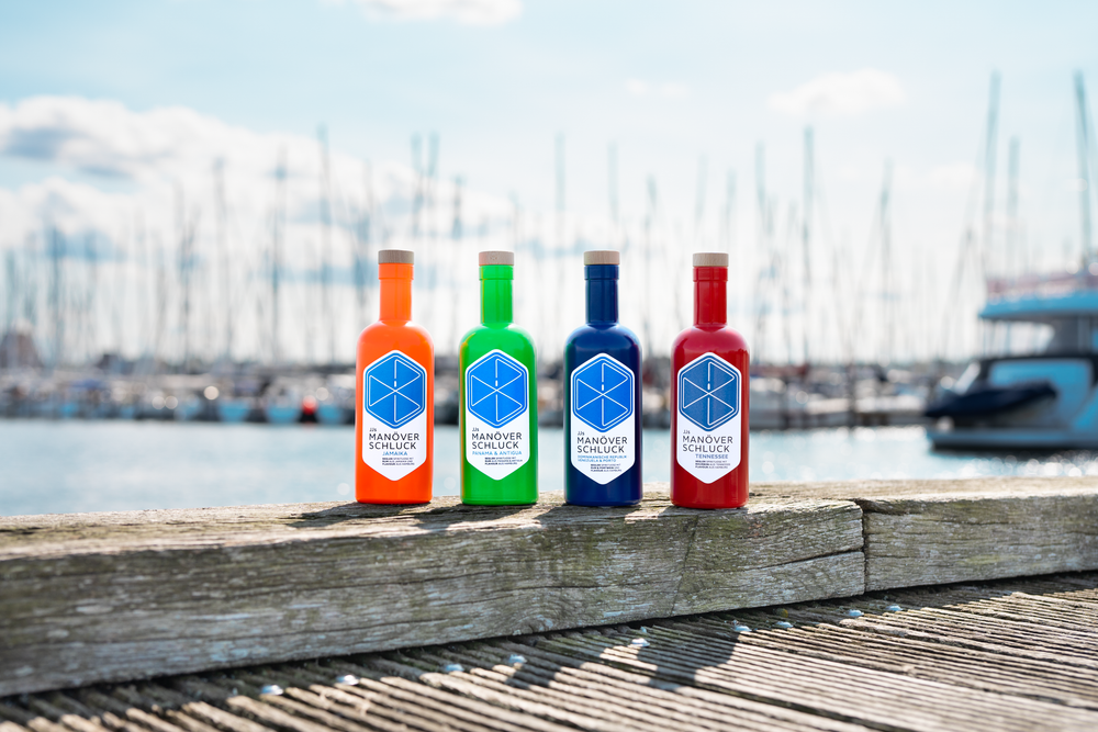 Unsere Flaschen kommen im auffälligen maritimen Design daher. Die Farben von Bojen und Tonnen werden in einem speziellen Verfahren auf die Flaschen aufgetragen und die Holzkorken erinnern an die vielen wunderschönen Holzboote. Dafür wurden wir mit dem weltweit renommierten iF Design Award ausgezeichnet.
