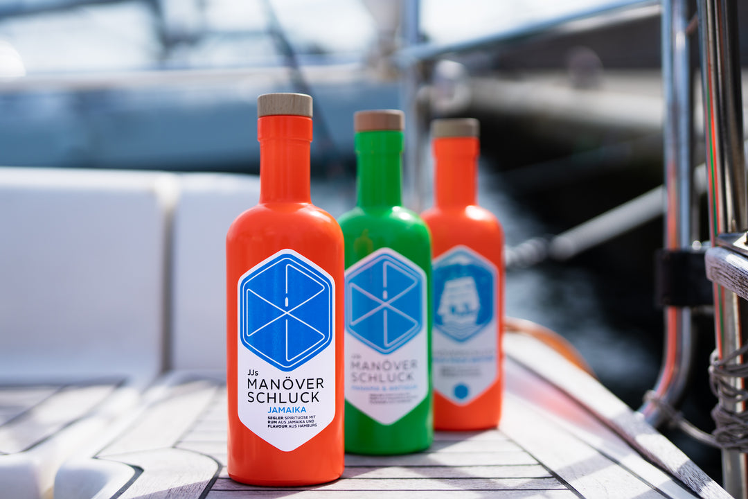 Through the use of high-quality ingredients and unique recipes, a first-class taste that has received numerous awards from experts is achieved. JJs Manöverschluck stands for modern, delicious spirits that simply taste good on board.