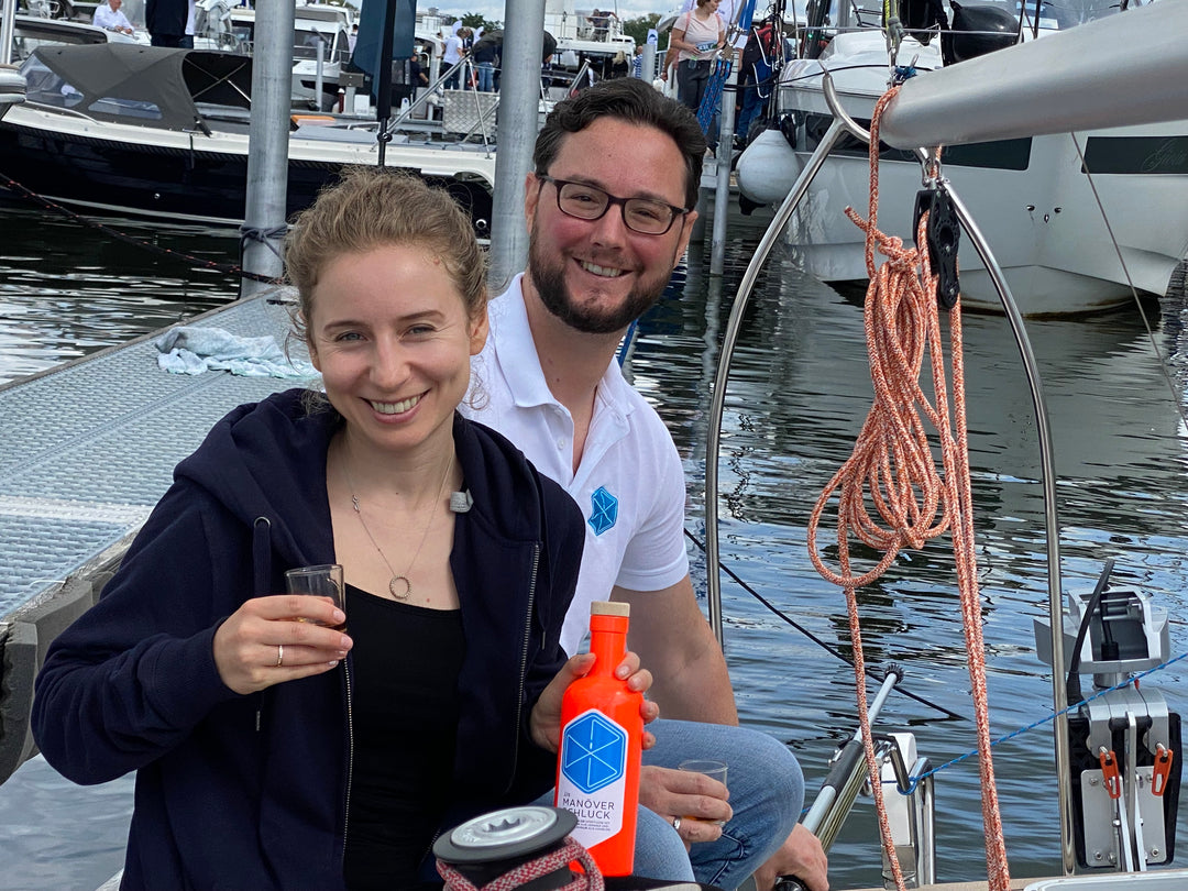 David and Jens, the two founders of JJs Manöverschluck, were on a sailing trip together. Of course, a rum for the maneuvers was on hand. In the evening on deck wathcing the sunset they talked about the fact that a classic rum is often too heavy and that there should be something fresh and delicious. That's how the idea for JJs Manöverschluck was born: spirits from sailors for sailors.
